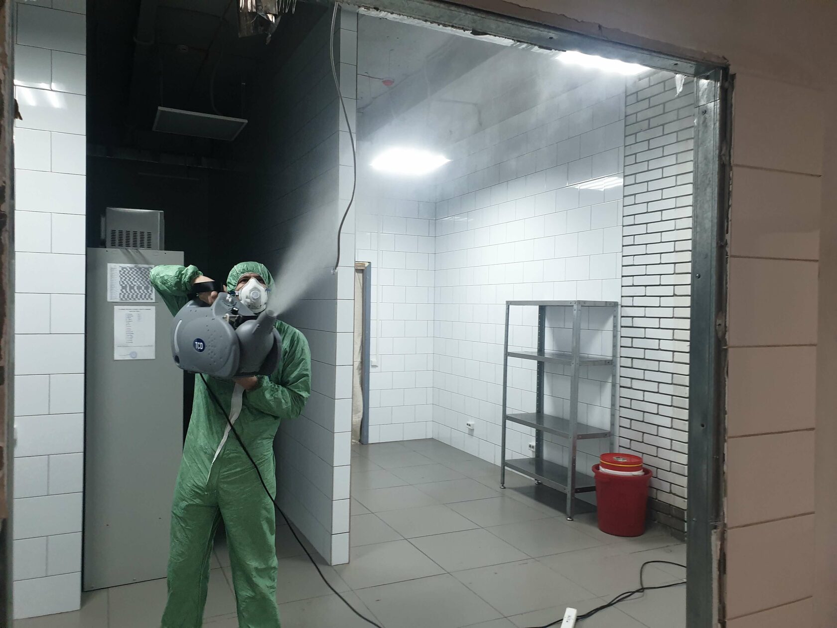 3. Подготавливает рабочий раствор и оборудование, надевает средства индивидуальной защиты. ВАЖНО, во время обработки помещения, находиться внутри разрешено ТОЛЬКО в средствах индивидуальной защиты